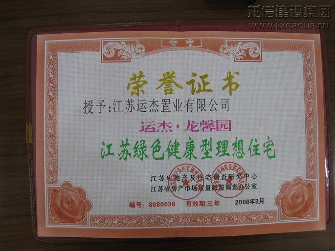 江蘇綠色健康幸理想住宅榮譽(yù)證書(shū)