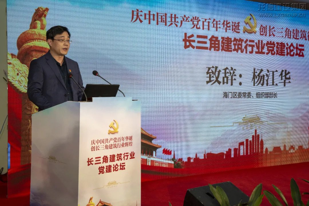 會上,海門區(qū)委常委、組織部部長楊江華致辭,他指出,海門是聞名遐邇的建筑之鄉(xiāng)。今年是“十四五”開局之年,海門正加快推進(jìn)建筑企業(yè)現(xiàn)代化轉(zhuǎn)型的步伐,而龍信集團(tuán)始終走在前列,為推動海門建筑全產(chǎn)業(yè)鏈協(xié)同發(fā)展,推廣綠色建筑、智慧建筑創(chuàng)新發(fā)展提供了參考。這一成績的取得與龍信集團(tuán)始終堅持黨的領(lǐng)導(dǎo)息息相關(guān),希望更多的企業(yè)牢固樹立“抓黨建就是抓發(fā)展,企業(yè)發(fā)展必須抓黨建”的原則,以黨建工作的高質(zhì)量保證企業(yè)發(fā)展的高質(zhì)量。希望更多人士關(guān)注海門、來到海門、建設(shè)海門,也希望更多的企業(yè)把黨建工作作為引領(lǐng)公司發(fā)展的不竭動力。