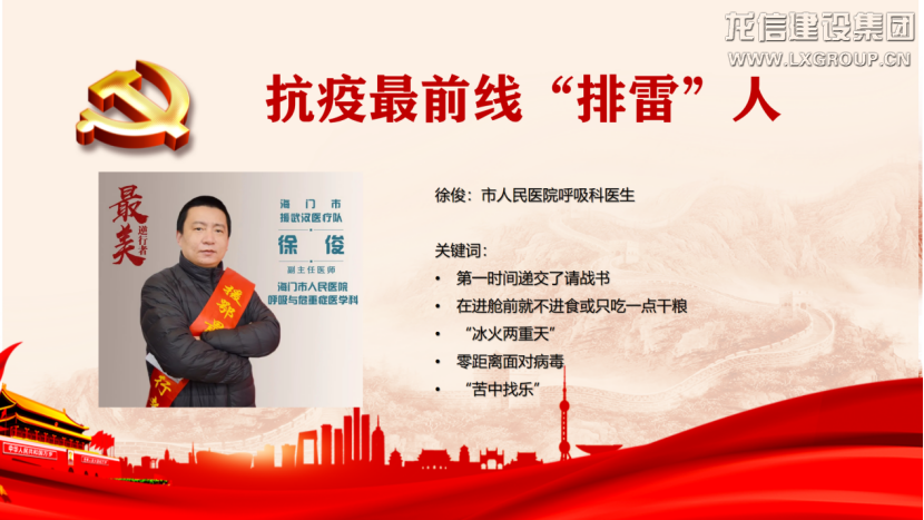 為了讓黨員同志更好地學習抗疫先進事跡、發揚抗疫精神,此次理論學習,科室支部主要圍繞海門市人民醫院6名援鄂醫護人員的英雄事跡展開學習,學習他們“英勇無畏、無私奉獻、逆向而行、舍小家顧大家”的家國情懷和崇高境界,真正體現了“醫者仁心,救死扶傷”的奉獻精神、無畏精神。