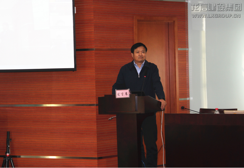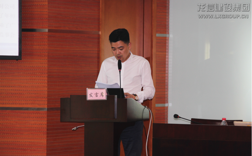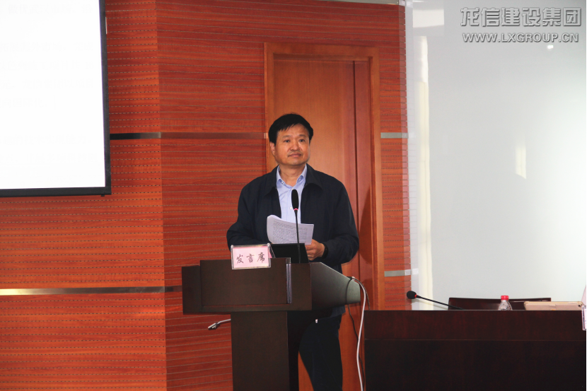 龍信集團黨委副書記、總經理唐愛東發表講話。唐總以三堅持、三突出概括總結建筑板塊需落實的事項。第一,堅持高度重視黨建,突出講黨性,重學習,切實加強黨建引領企業高質量發展。第二,堅持責任壓實,突出強執行,抓落實。分子公司、項目部要堅持問題導向,落實整改。第三,堅持以項目為載體,突出項目求實效。利用信息技術提高項目管控水平,促進企業管理提升。