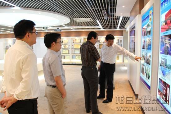 2013年5月26日,住建部建筑節(jié)能與科技司副司長韓愛興一行蒞臨龍信集團就企業(yè)轉(zhuǎn)型升級、科技發(fā)展、科技成果轉(zhuǎn)化等相關(guān)作進行視察。龍信集團董事長陳祖新陪同韓司長參觀了展廳和遠程視頻監(jiān)控室并匯報了相關(guān)工作。