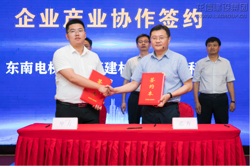 大會(huì)現(xiàn)場(chǎng),在海門市人民政府副市長勞劍東,蘇商會(huì)副會(huì)長兼秘書長俞文勤,龍信集團(tuán)董事長陳祖新的見證下,中梁集團(tuán)和南通現(xiàn)代建筑產(chǎn)業(yè)園合作的中梁集團(tuán)建筑產(chǎn)業(yè)基地項(xiàng)目、萬科集團(tuán)和南通現(xiàn)代建筑產(chǎn)業(yè)園合作的萬科集團(tuán)采筑平臺(tái)項(xiàng)目、阿路美格和南通現(xiàn)代建筑產(chǎn)業(yè)園合作的A級(jí)防火金屬復(fù)合板及防火保溫一體化產(chǎn)品項(xiàng)目集中簽約。龍信集團(tuán)與東南電梯、久諾建材、法寧格科技進(jìn)行產(chǎn)業(yè)協(xié)作簽約。