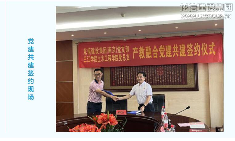 最后,王希賓書記、費永新副書記代表校企雙方進行了校企黨建共建合作協議的簽約。此次簽約,標志著三江學院土木工程學院與龍信集團在黨建共建合作辦學、技術合作等方面邁出了堅實的一步。