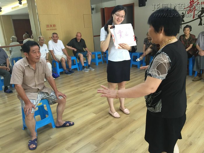 第一組上場的是909室陸阿姨和陸叔叔,阿姨在生動形象地表達著她所看到的詞匯,叔叔卻只能一臉茫然地盯著阿姨,引得全場笑聲陣陣。第二組是1201室的孫叔叔和葉阿姨,葉阿姨在比劃著,叔叔心里似乎已經有了答案,可是遲遲說不出來,在場的其他人都在替他著急。接下來不得不說的是這對親家母組合,她們一上場就表現得從容淡定,黃阿姨比劃,沙阿姨猜,兩人的默契程度真是無人能及。
