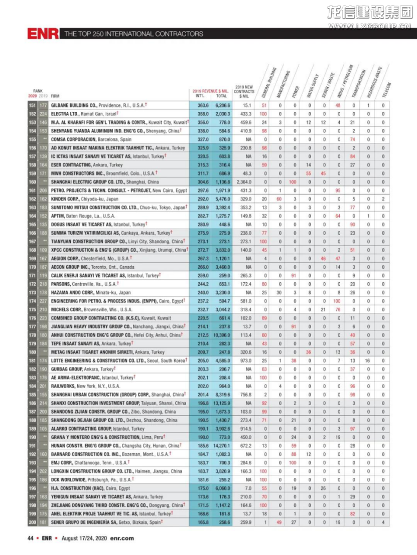 作為全球最大的工程承包商之一,2019年龍信集團以高質量發展為目標,堅持黨建統領,聚焦建筑主業,以EPC工程總承包模式推動企業發展再上新臺階。同時,龍信集團緊跟國家戰略,積極踐行“一帶一路”倡議,優化海外經營布局,加快“走出去”步伐,在眾多國家和地區擁有工程承包項目,其中在“一帶一路”沿線65個國家承建項目累計達60多個。集團連續兩年入圍ENR“全球最大250家國際承包商”榜單,是集團在全球范圍內提供高品質、高附加值的全裝修住宅和一流服務在國際市場的認可,同時提升了“南通建筑鐵軍”的知名度和影響力!