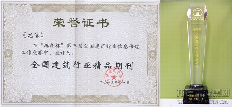 11月12日,全國建筑行業信息傳媒工作經驗交流會在浙江嘉興召開,會上宣讀《關于公布“鴻翔杯”第三屆全國建筑行業信息傳媒工作競賽優勝者名單的決定》。由我集團主辦的《龍信》雜志被評為精品期刊,龍信建設集團有限公司網站被評為精品網站。